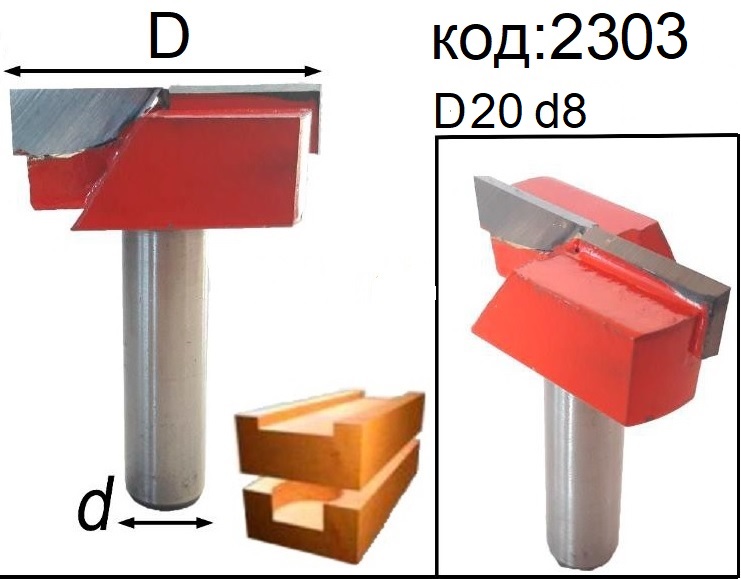 Фреза 2303 предназначена для быстрой черновой обработки (выравнивания) поверхности деревянного щита или слэба. Фреза для слэбов позволяет за один проход выравнивать поверхность шириной 20 мм. Она оснащена двумя торцевыми ножами высотой 10 мм, что и позволяет за один проход устранить неровности и перепады на плоскости обрабатываемой поверхности по высоте до 10 мм. Фреза изготавливается с хвостовиком диаметром 8 мм.