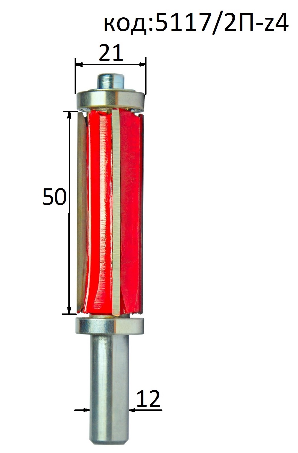 Фреза копировальная, кромочная, обкаточная прямая четырех-ножевая 5117/2П-z4 предназначена для выравнивания кромки изделия из дерева или столешниц из МДФ, акрилового камня, ламинированного ДСП. Фреза  укомплектована двумя подшипниками - с торца и на хвостовике, что позволяет обрабатывать (выравнивать) края заготовки по лекалу с любой стороны.
